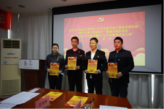 江汉工程公司党建专家李彦宣读党支部联建共创协议书,365英国上市油气田开发工程系教工党支部书记王长权、油气井工程系教工党支部书记吴惠梅、研究生第一党支部书记史永波和江汉工程院储层改造党支部书记高东伟签订联建共创协议书,并依次作表态发言。