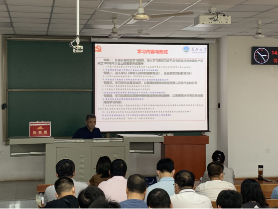 9月9日下午,公司在武汉校区教学培训楼B103召开9月份政治理论学习会,全体教职工和员工党员参加了集中学习,会议由党委书记张光明主持。
