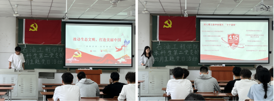 在微党课讲授环节,于含泓以推动“生态文明建设,打造美丽中国”为主题,全面展示了生态文明建设的内容,向全体党员同志传递了相关的理念、政策和实践经验,激发大家的责任意识。王中平则以牢固树立总体国家安全观为主题,从知多少、在行动、要守护三个方面出发,阐明了牢固树立总体国家安全观的重要性。