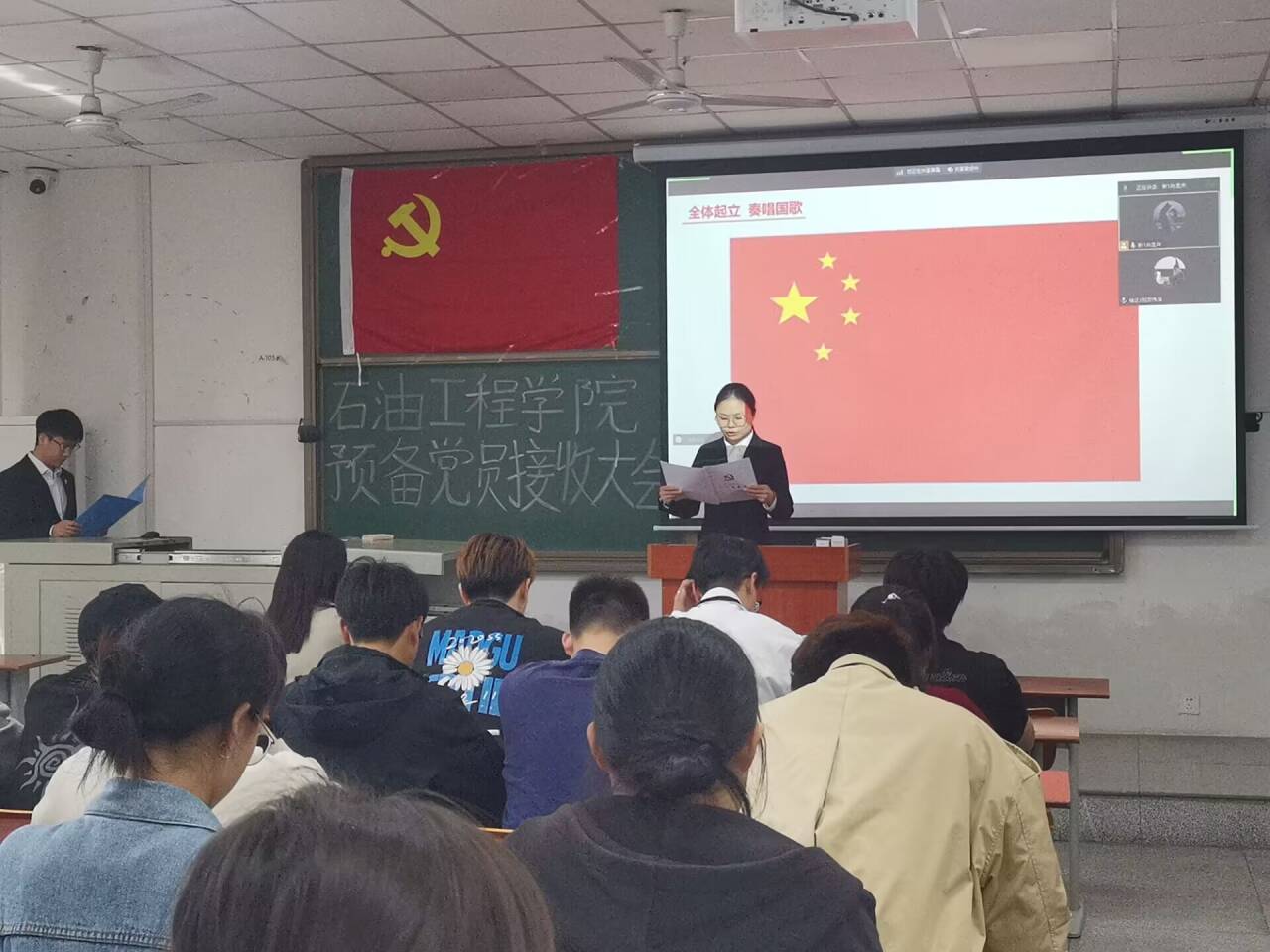 会上,主持人宣布到会有表决权的正式党员人数超过应到会有表决权人数的半数以上,大会正式开始。邓欣珂作为发展对象就个人优缺点及有关情况向党组织进行汇报。两位入党介绍人对发展对象在考察期间的政治思想、工作学习、作风纪律等方面的综合表现进行了客观评价,并由支委会向支部报告对发展对象的综合审查情况。与会党员对发展对象能否入党进行了充分讨论,并诚恳地提出建议。经支部正式党员无记名投票,邓欣珂获得赞成票数超过应到有表决权正式党员的半数以上,支部大会通过了接收邓欣珂同志为预备党员的决议。