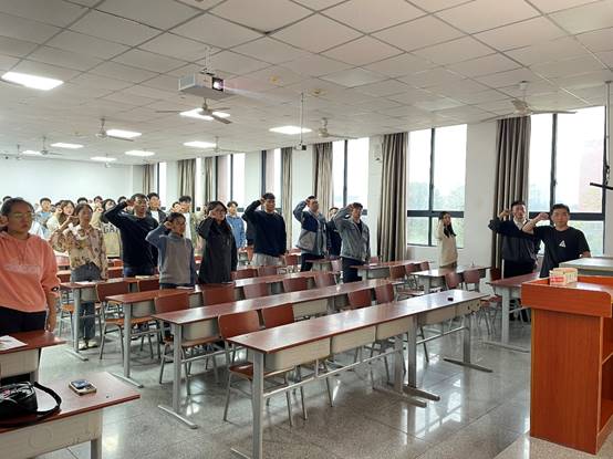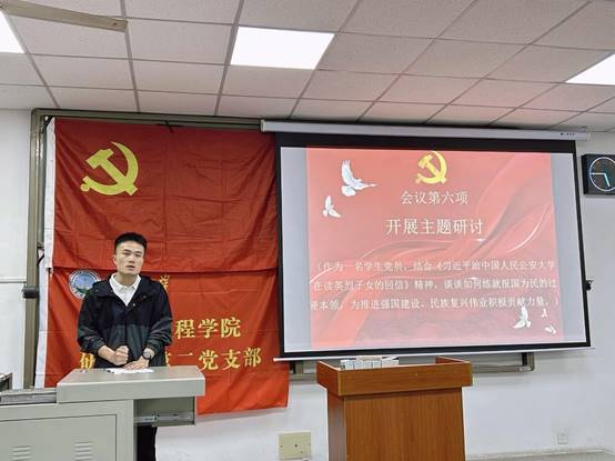 芮烁同志带领全体党员重温入党誓词;初志泓同志带领全体党员集体诵读学习《中国共产党章程》第八章相关内容,开展理论学习和主题研讨:结合《习近平给中国人民公安大学在读英烈子女的回信》精神,关于“如何练就报国为民的过硬本领,为推进强国建设、民族复兴伟业积极贡献力量”这一主题,吴晓卫同志提出:“我们应以‘理想信念坚如铁’的定力补钙铸魂,始终牢记自己的第一身份是党员,在任何情况下都做到政治信仰不变、政治立场不移、政治方向不偏,为推进强国建设、民族复兴伟业积极贡献力量。”