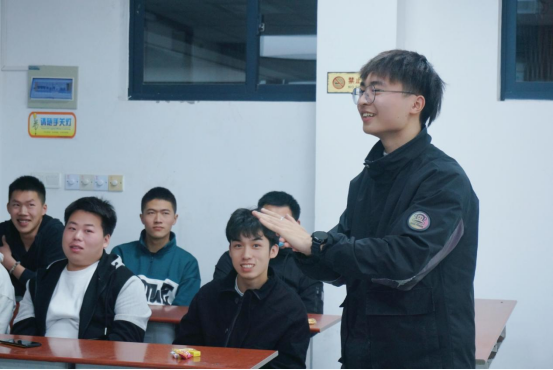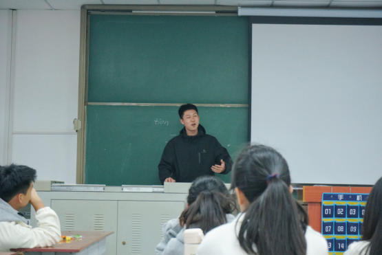油工21905班夏怡与油卓22001班江雨龙两位同学从考前准备、题型分类和做题技巧等方面给大家做了经验交流。针对听力这一大家普遍认同的难题,江雨龙指出根源在于词汇量不足,他建议大家每天从慢速听音到倍速听音,循序渐进地进行听力训练。江雨龙严谨细致的分析思路与夏怡诙谐幽默的讲述方式纷纷获得了在场同学的一致好评。