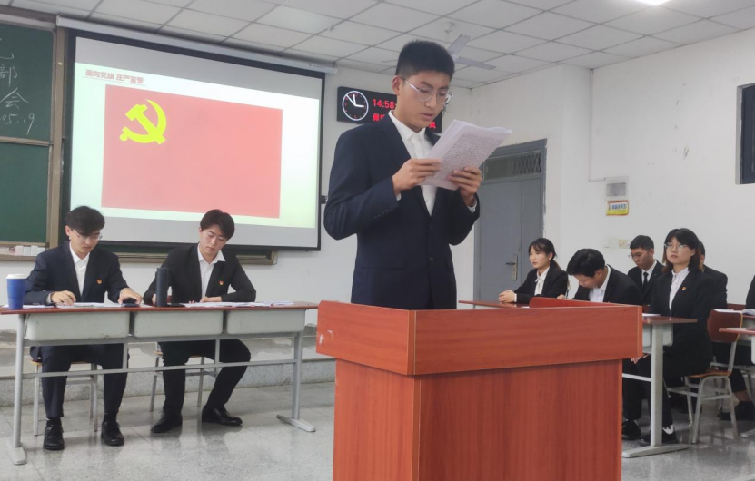大会伊始,全体起立奏国际歌。其后,罗晓矗等14名发展对象逐一向党组织全面深刻地剖析自己的缺点和未来改进的方向。随后,由两位入党介绍人向与会人员介绍了该同志的思想政治和学习生活情况并由支委宣读其政治审查情况;随后对于该名同学入党情况进行大会统一讨论,许多同志对本次的发展对象真实地指出了其存在的问题并对他们日后的工作与学习提出了建议。经支部党员充分讨论,以正式党员无记名投票方式对发展对象进行投票并现场公布投票结果,罗晓矗等14名发展对象全票通过,党支部决定接收他们为中共预备党员。随后,罗晓矗等14名发展对象面对党旗庄严宣誓,表明了自己对党的忠诚和入党决心。