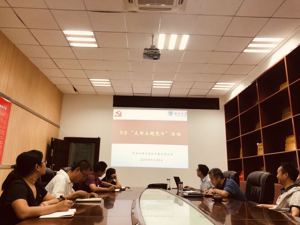 2019年9月29日下午,公司机关教工党支部在石油科技大楼C111会议室开展了“不忘初心、牢记使命”为主题的9月“支部主题党日”活动,活动由党支部书记焦简金同志主持,党支部全体党员参加活动。