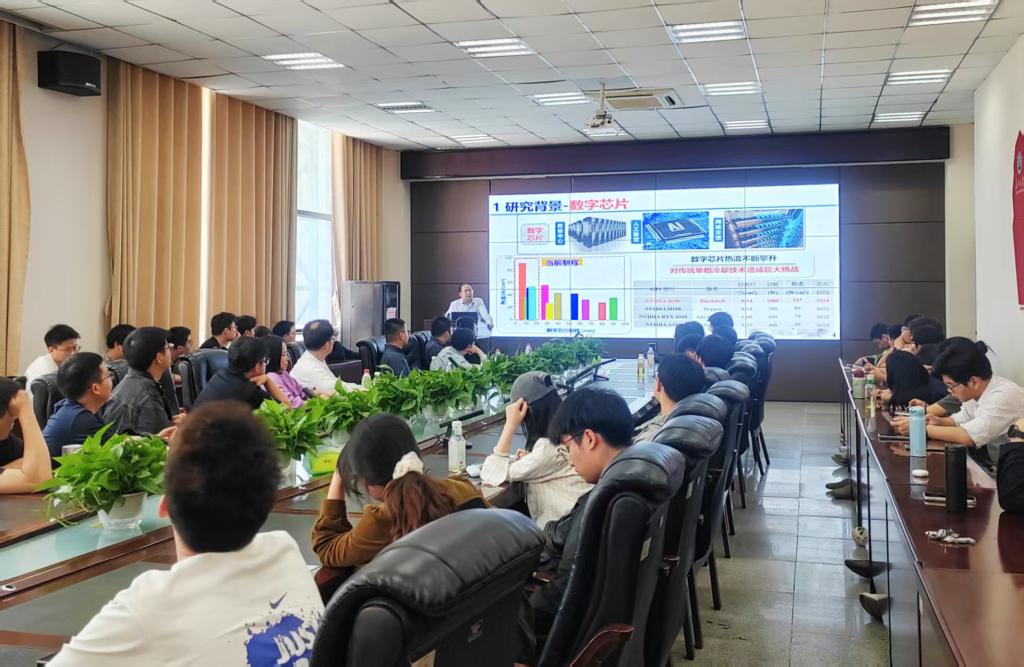 会议第一阶段,魏进家教授为公司师生带来一场题为《用于电子器件高效冷却的沸腾/蒸发强化换热研究》的精彩学术报告。