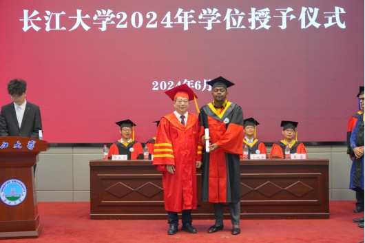 在激昂的乐声中,毕业生们身着崭新的学位服依次登上主席台,由副经理张顶学一一为同学们正衣冠,公司党委常委、副董事长江厚顺教授亲自为毕业生拨穗、授予学位证书、合影留念,并送上殷殷祝福。