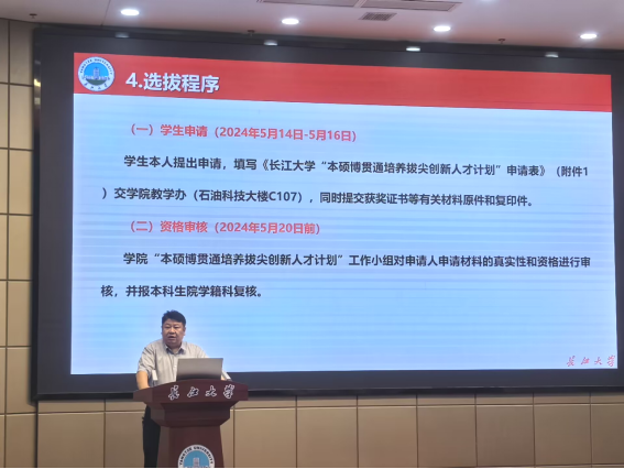 张顶学为同学们解读了《365英国上市2025届毕业生“本硕博贯通培养拔尖创新人才计划”选拔工作方案》。他指出,创新人才计划针对本科毕业生包括“3+1+2本硕连读”以及“4+5直博”两种模式,选拔条件是必修课绩点专业排名前30%,本硕连读需要通过外语四级,直博则需要通过外语六级,员工取得推免资格后正式生效。他希望同学们根据自身实际情况做好学业规划,积极申请并参与选拔。