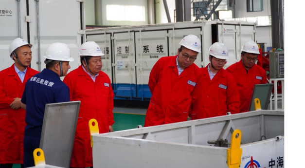 11日上午,在中海油能源发展工程技术公司,座谈交流会前,工程技术公司副总经理汪佑江陪同张顶学副经理一行参观了工程技术公司井下技术公司、钻完井数据中心、中海油井控中心国家海上油气应急救援天津基地。