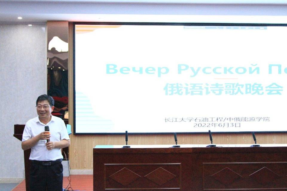 他表示:2019年他曾经访问过俄罗斯,今晚的诗歌晚会令他不自觉的翻出以前的照片浏览,优美的诗歌韵律伴随着美丽风景照片、视频带领他重温了一遍俄罗斯美丽风景。此次晚会感受颇多,我们大一的新生在加入中俄班短短2个月由零基础可以流利的朗诵俄语诗歌,同学们的学习效率令人欣慰,也感谢外教与能源公司老师对员工的精心培养,让我感受到了异国语言的魅力和风情同时,为我们进行“一带一路”国际化人才培养做好了准备。同时也感谢同学们在端午佳节之际,为我们呈现一场“诗歌的盛宴”。