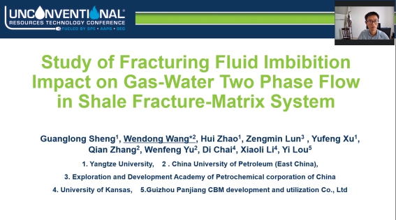 据悉,赵辉教授团队在暑假期间受邀参与多个国际国内学术交流讨论会议。7月20-22日带队参加由美国石油工程师协会(SPE)举办的第八届非常规资源技术大会(URTeC2020),盛广龙博士代表团队成员做了题为“Study of Fracturing Fluid Imbibition Impact on Gas-Water Two Phase Flow in Shale Fracture-Matrix System”的专题报告;8月22日赵辉教授受邀参加“第二届全国青年渗流力学学术会议暨首届地下资源开发人工智能与大数据前沿论坛”担任大会主持,并做了题为“基于INSIM的数据驱动模拟体系及智能优化方法”的报告。