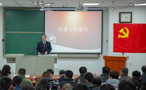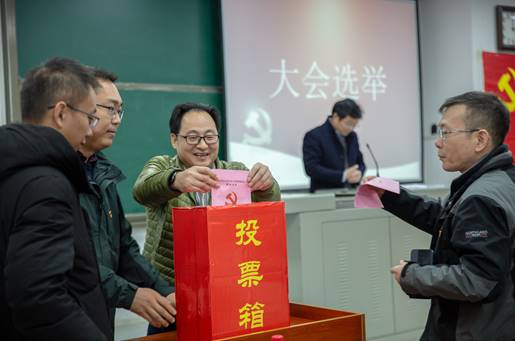 会场党旗庄严,气氛隆重,公司领导班子成员、教师党员、本科生党员、研究生党员参会。会议听取了党委工作报告,并投票选举出新一届党委成员,大会由经理江厚顺主持。