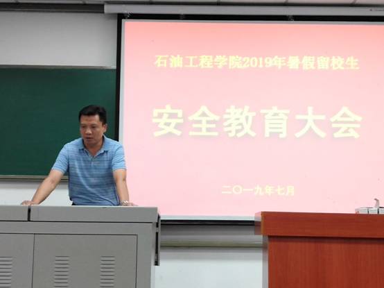首先公司党委副书记王辉讲话,他从保证与家庭的联系、安全是一切工作的前提、不虚度留校时光、学工办老师为暑期留校生的安全保驾护航、每位员工都需签署安全责任书等五个方面说明了本次大会的目的,着重强调了暑期留校安全的重要性,要求每位同学认真学习并签署留校安全责任书,做到在保证安全的前提下实现留校的学习生活目标。