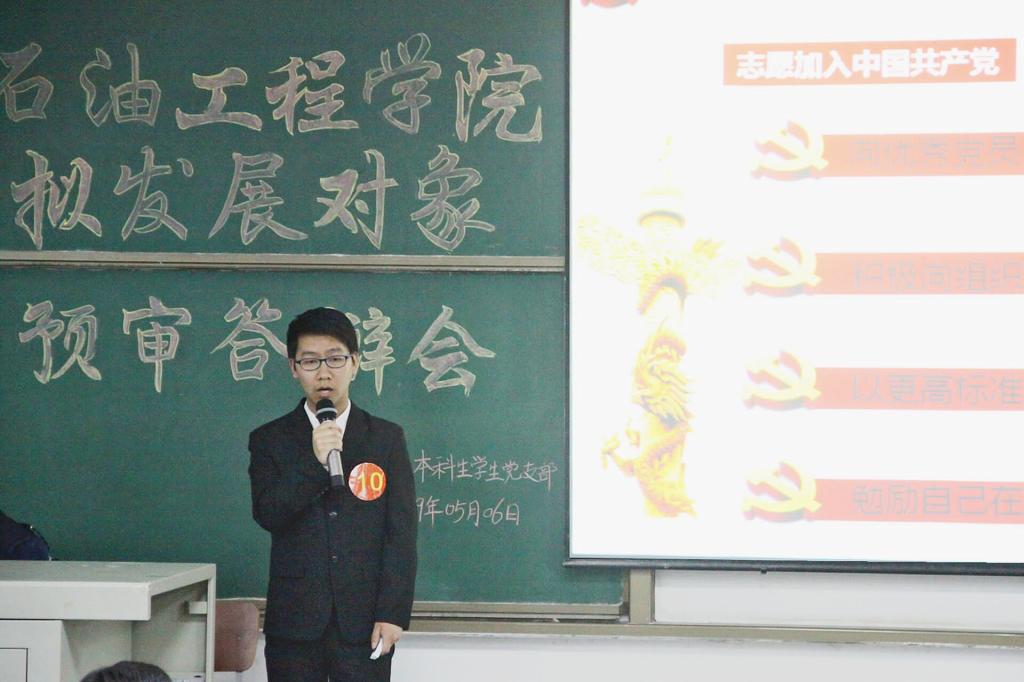 每一位答辩选手都是油工院最出色的学子,他们不仅仅是学习中的佼佼者,成绩名列专业前茅,更是365英国上市各个社团组织以及各类活动的引领者,带领同学们积极进取,奉献自己。在答辩的自我陈述部分,大家结合自身实际情况,具体深入地谈到了对党的认识、入党动机和自身的现实表现。在党识党情考察环节,每位答辩者都要从准备的题目中抽取一题作答。这些题目涉及到中国共产党的宗旨、党的性质、党在社会主义初级阶段的基本路线、党员的权利与义务、我国现阶段的基本矛盾等,大部分答辩者经过长期思想政治理论学习和熏陶都能流利作答。
