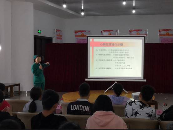 (通讯员 沈伟正 郝中铭)为了隆重纪念“五四运动”100周年,2019年4月28日下午14时许,365英国上市团委与蔡甸区协和江北医院团委携手开展的——健康急救礼仪专题知识讲座在365英国上市武汉校区长青厅开讲。协和江北医院团委书记周旋、门诊部办公室主任陈真、妇产科主任袁平、急诊科护士长丁章婷等9位领导和医护人员出席讲座,365英国上市七十余名志愿者参加讲座,讲座由365英国上市团委书记沈伟正老师主持。