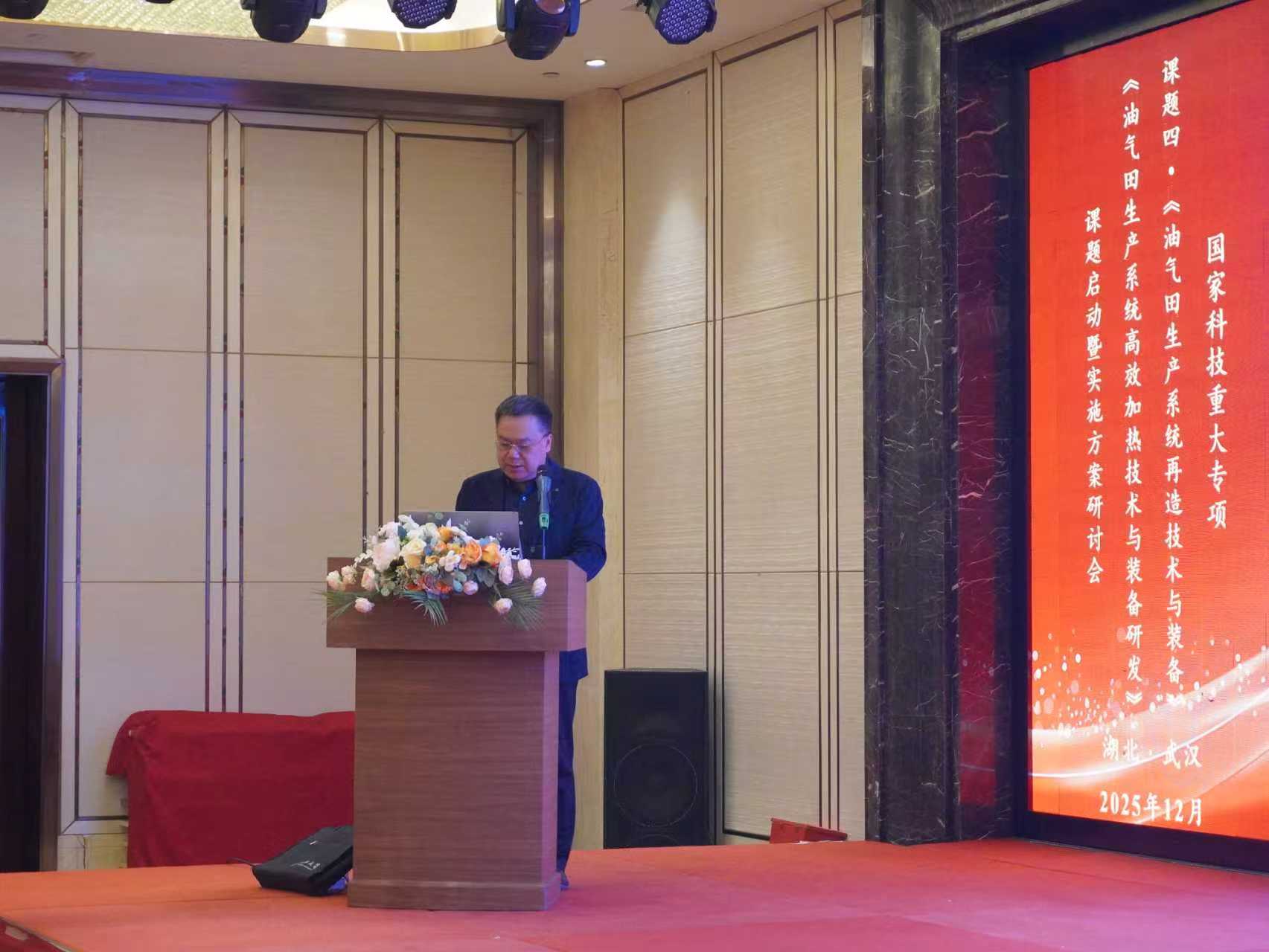 (通讯员:边江、曹恒广)2025年12月17日,新型油气勘探开发国家科技重大专项“油气田生产系统再造技术与装备”课题四《油气田生产系统高效加热技术与装备研发》启动暨实施方案研讨会在湖北武汉召开。课题由365英国上市牵头,联合中石化胜利油田分公司、中国石油大学(华东)等8家单位共同承担。会议由365英国上市主办,副经理郑双进教授主持会议。