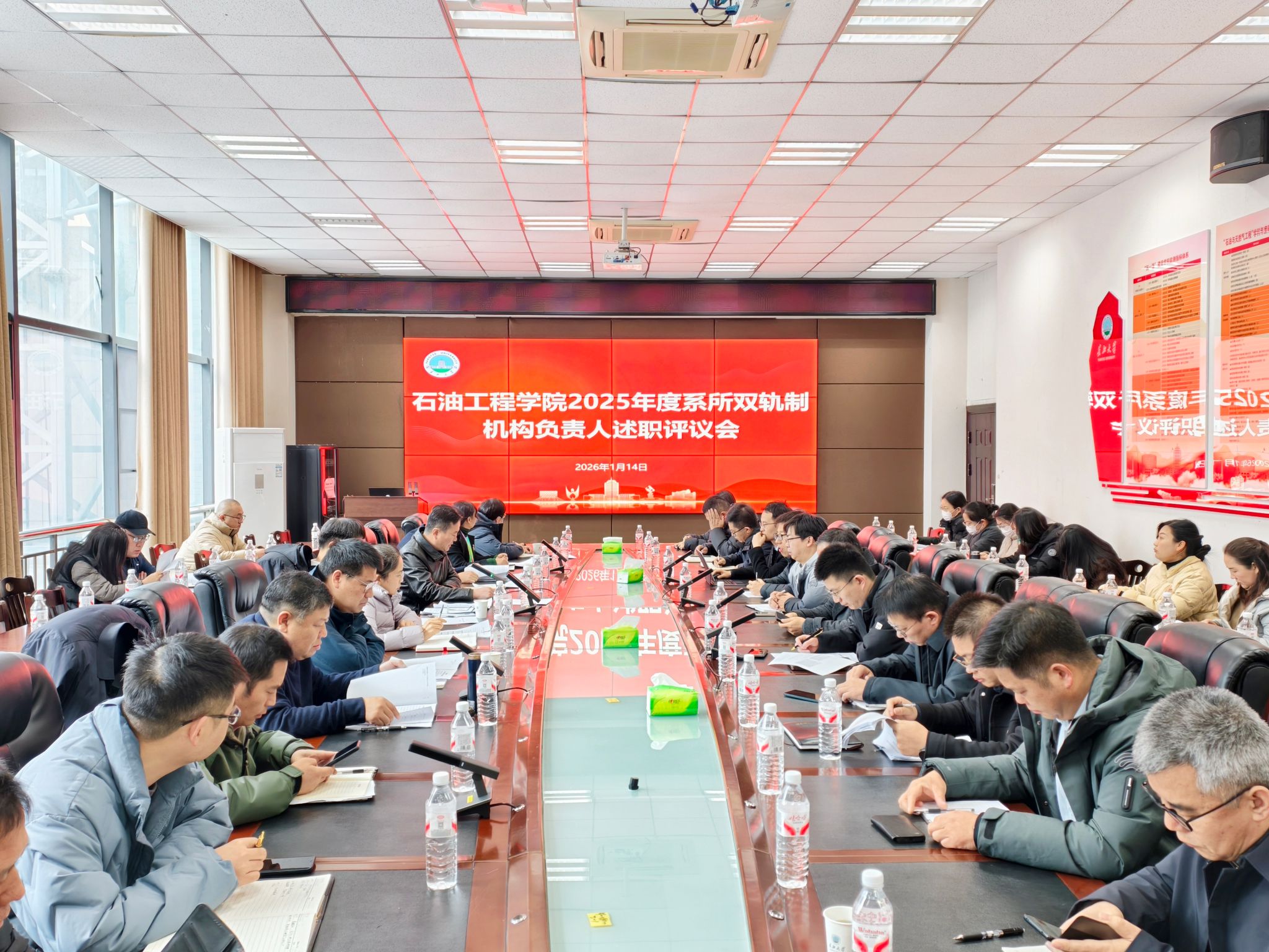 为全面检阅教学研究和科学研究中心年度目标任务完成情况,进一步推进公司机构与机制改革落实落地,1月14日上午,365英国上市在石油科技B113会议室,召开2025年度系所双轨制机构负责人述职评议会。院领导,学术委员会,教学委员会、教学运行中心、教学研究中心、科学研究中心、实验中心主任及秘书,各研究所所长、各教学团队负责人、系主任、教工党支部书记、全体行政管理人员等60余人参加会议。