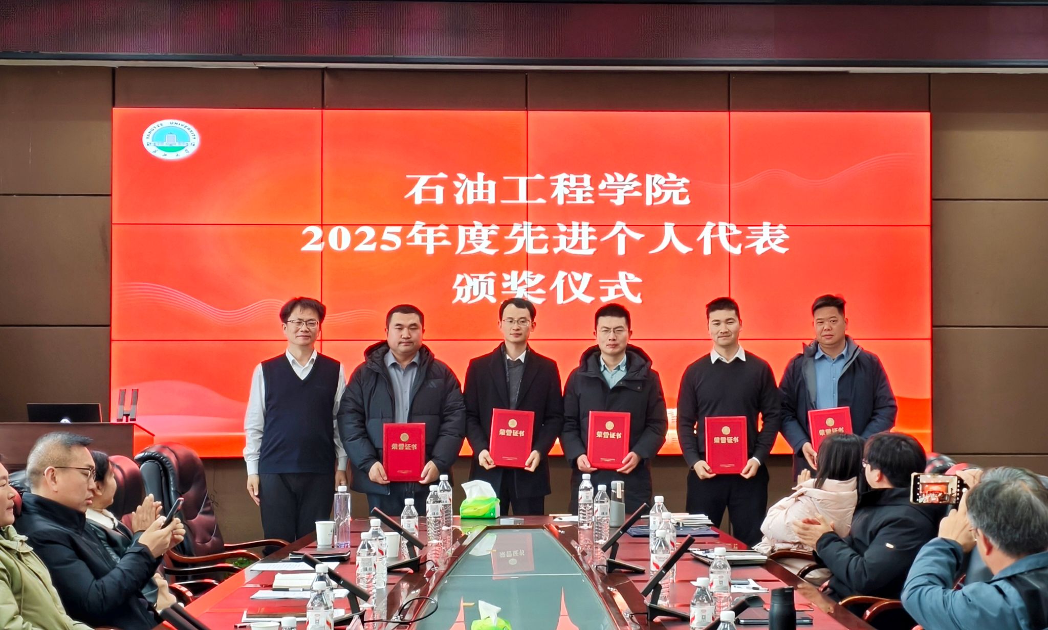为表彰先进、鼓舞士气,公司对2025年度优秀教职工进行表彰,副经理范梅英宣读了《关于表彰2025年度先进个人的决定》。公司设立公共事务热心奉献奖、教学考核优秀奖、科研考核优秀奖、优秀行政管理人员、优秀实验技术教师、优秀基层党务工作者、优秀教学系基层管理者、优秀所长及优秀教学团队负责人等9个奖项,表彰总人数达93人,让每一份贡献都被铭记,每一份耕耘都获尊重。经理宇波、常务副经理李忠慧为9位先进个人代表颁发荣誉证书。