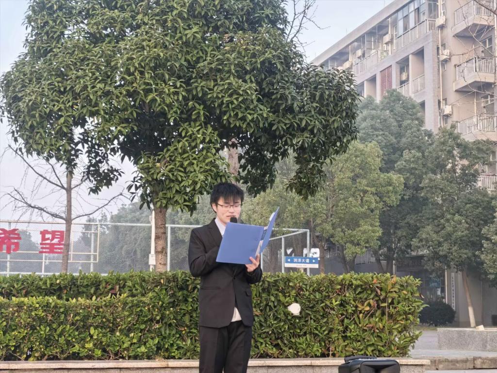 在庄严的国歌声中,鲜艳的五星红旗冉冉升起,全体师生行注目礼,齐唱国歌,深切感受此刻的爱国情感。随后,储运22401班裴俊翔同学作为员工代表发言,他分享了自己从困惑线性代数的专业价值,到参与大创项目后领悟其核心作用的经历,表达了将通过勤学实干积累知识、参与科研创新,践行“能源报国”信念,为国家能源安全贡献青春力量的决心与担当。