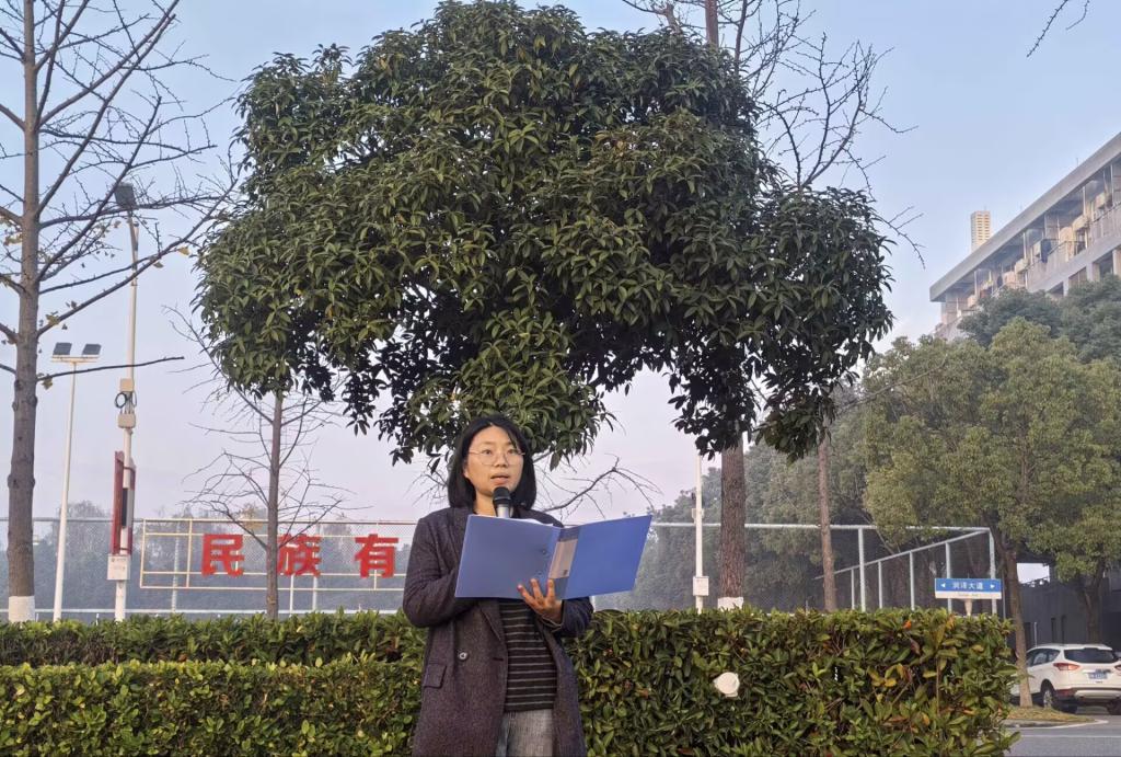 辅导员商麟鑫进行国旗下讲话,她首先对参与老员工创新创业项目的同学给予鼓励,希望同学们在参与科研训练的过程中提高创新意识与科研思维水平,将理论与实践紧密联系起来,为将来能源报国筑牢学术基础。她还介绍了公司近期承办的“王涛英才奖学金颁奖典礼”相关情况,并解读了原石油工业部部长王涛同志提出的“三争精神”:“追求卓越就是争气,攻坚克难就是争气,为国奉献就是争光!”商老师提醒同学们要珍惜课堂时光、主动钻研学习,以王涛英才为榜样践行“三争”精神,用实干书写石油学子的青春答卷。